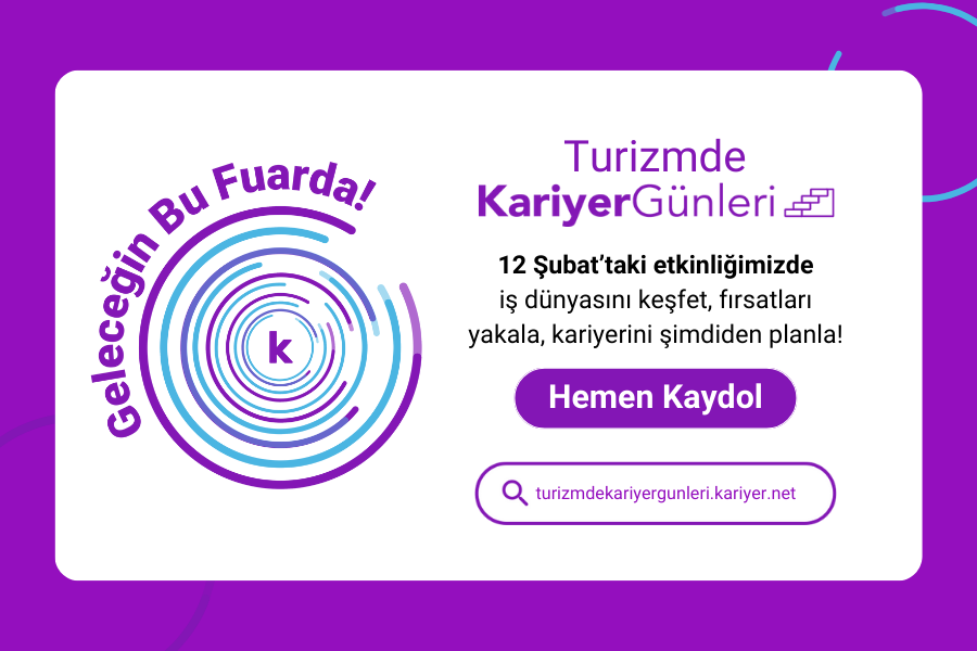 Turizm sektörünün lider firmalarıyla bire bir tanışma ve kariyerine yön verme fırsatını kaçırma! 12 Şubat’ta online gerçekleşecek Turizm Kariyer Günleri’nde yerini al, staj ve iş fırsatlarını erkenden keşfet!